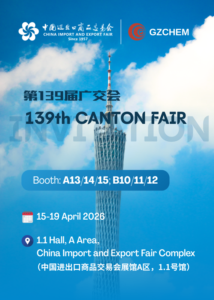 We are thrilled to announce that Guangzhou Chemicals will be exhibiting at the 139th China Import and Export Fair (Canton Fair) this spring!